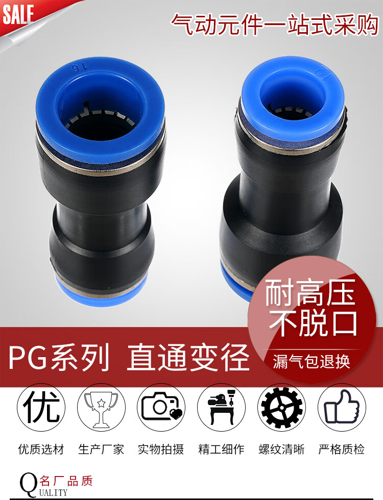 工途气管转换接头快速4变6接8转16 PG-4 6 8 10 12 14 16直通变径快 蓝帽PG10-8